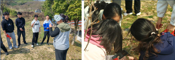 最后,同学们走进山林中,跟随指导员老师寻找野茶苗,将野茶苗移栽到山林外的种植园中。同学们挥舞锄头,小心地剥离着茶苗外部根系,连带着大小适宜的土块一并分离出来。在种植园,同学们先是去河边取水,再平整土地,将茶树苗和冬青树苗等距种下,小心翼翼又干劲十足,希望自己种的小树苗能够快点长大,早日能采摘茶叶和冬青叶,为当地村民带来一份份“绿色收入”。