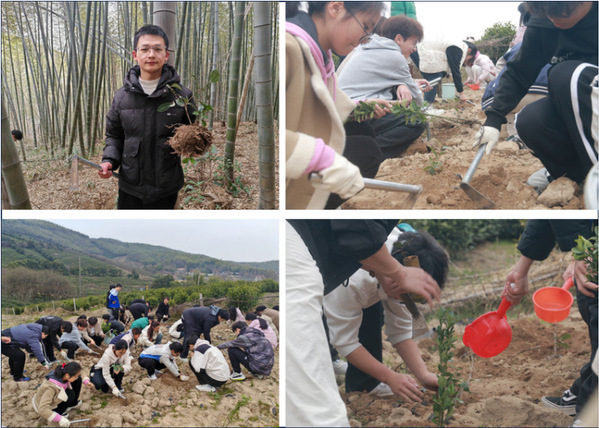 3月9日,在植树节即将到来之际,计算机科学与技术学院/软件学院、人工智能学院2023级本科生第一党支部联合2024级本科生团总支走进溧阳市戴埠镇南渚村开展“‘遇候’春笋,植树青山”劳动教育活动。辅导员和学生党团员代表共同参加此次活动。