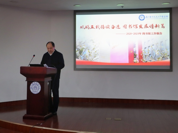 图书馆馆长袁家斌作了图书馆2020-2024年工作报告。报告以《砥砺五载接续奋进图书馆发展谱新篇》为题,详细总结了图书馆过去五年在完善内部治理体系,提升阅读支持、信息服务品质以及智慧图书馆建设等方面取得的显著成效,为学校教学、科研和人才培养提供了坚实有力的支撑。他强调,图书馆将继续以习近平新时代中国特色社会主义思想为指导,深化改革,不断创新工作思路和方法,持续提升服务质量和管理水平,为学校“双一流”建设和人才培养做出更大的贡献。