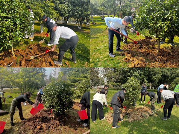 暖阳轻洒,宜育新苗。在第47个植树节来临之际,将军路校区管委会在砚湖周边组织开展“携手播种新绿,共建绿色校园”义务植树活动。校区管委会领导班子成员、机关全体工作人员、领导干部对接联系的党支部和班级学生等30余人参加活动。