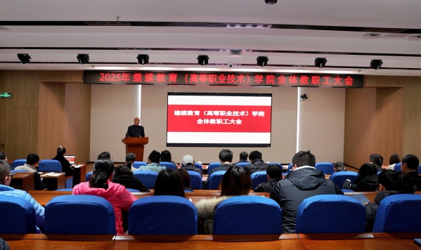 为贯彻落实党的二十届三中全会精神和全国教育大会精神,学习传达学校2025年干部教师大会精神,部署学院2025年重点工作,3月14日,继续教育学院召开新学期全体教职工大会,学院领导班子和全体教职工参加会议。会议由学院党委书记刘建成主持。