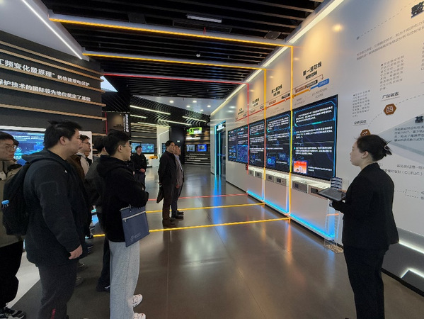 代表团一行首先参观企业数字化展厅,通过新能源技术成果展、智能电网沙盘演示等沉浸式体验,系统了解南瑞集团在电力自动化领域的行业领军地位及服务国家双碳战略的创新实践。在参观了解中,师生们了解观摩了特高压输变电设备的智能化生产流程,深入感受企业在高端装备制造领域的技术突破与产业化实力。
