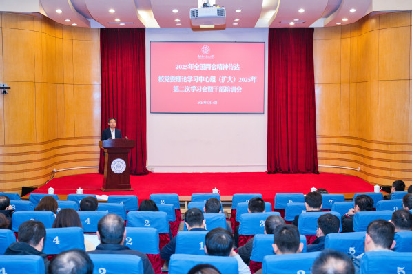 3月14日,我校召开校党委理论学习中心组(扩大)2025年第二次学习会暨干部培训会,专题学习习近平总书记在全国两会期间重要讲话精神和2025年全国两会精神。