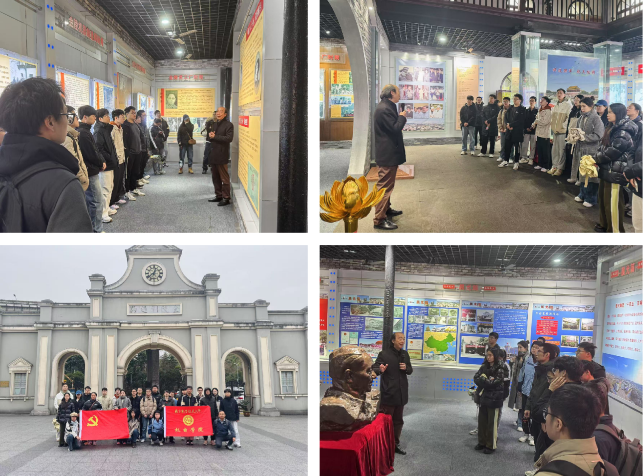 为深入学习贯彻党的二十届三中全会精神,提升学生党建工作水平,机电学院学生党总支组织开展“星火接力·航途先锋”党员骨干淬炼行动,进一步提升学生党支部书记的政治素养和履职能力,锻造一支政治坚定、作风过硬、担当有为的先锋队伍,3月14日下午,全体学生党支部书记在研究生辅导员杨斌盛、熊伊铭的带领下,前往明故宫校区立德树人馆、南京晨光1865文化创意产业园开展党员骨干淬炼行动第一期——“情境式微党课”研习交流活动。