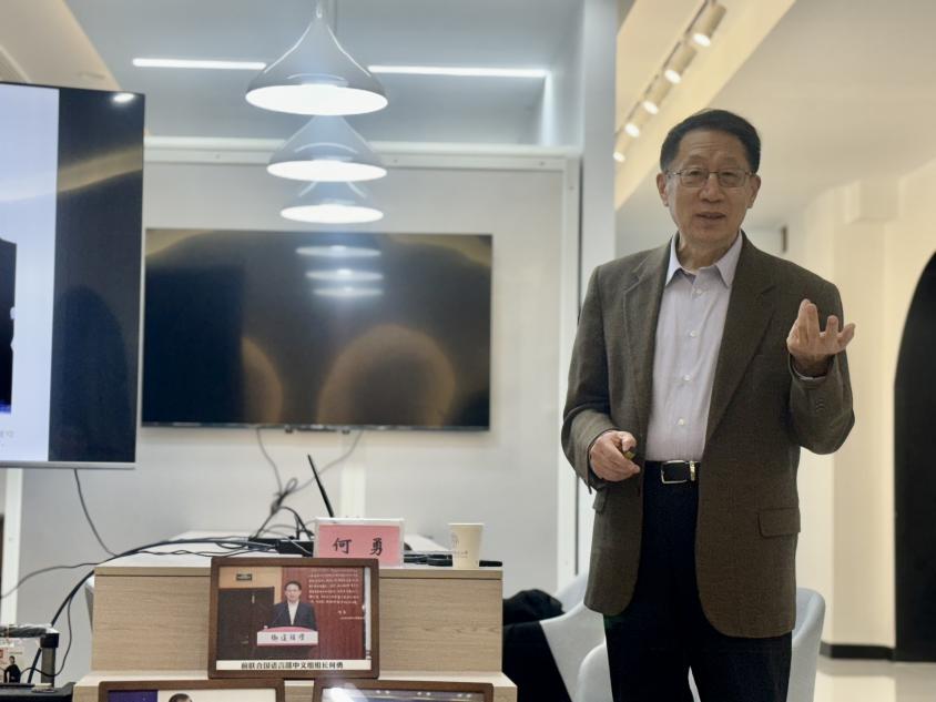 在联合国成立八十周年之际,为了深化学院师生对联合国的认识,更好把握中国在联合国中的大国角色和独特贡献,我校区域国别与国际传播研究院组织了“国际名家讲坛”区域国别与国际传播系列讲座。3月14日下午,哥伦比亚大学人类语言学博士、纽约大学兼职教授何勇于外国语学院一楼院史馆作了题为“中国与联合国”的报告。报告会由外国语学院姜礼福副院长主持,徐以中院长出席,30余名师生共同参加。