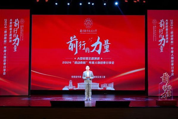 此次演讲分为逐光而行、向阳而生、御风而上三个篇章,10位2024“感动南航”年度人物代表走上舞台,分享感人故事:航空学院卢天健讲述了他作为剑桥大学800年历史上第一位华人讲席教授,毅然辞职回国,以坚定信念和实际行动诠释科学家精神的故事。无人机研究院FY1无人机交装保障团队的杨事民讲述了他们作为无人机事业迎难而上的“孤勇者”,用不平凡的坚守,托举起国之重器的故事。经济与管理学院MBA教育中心杜刚讲述了他深耕南航MBA教育事业16年的故事。机电学院林逸鹏讲述了他在失去听力后,坚定报考南航,克服常人难以想象的困难,取得一系列成绩的故事。艺术学院王青讲述了他用6年时间、4个角色、34场演出,与话剧《旋翼人生》相伴而行的故事。国际教育学院李卡讲述了他作为巴基斯坦籍留学生,创建南京首个外籍志愿者团队,关注留守儿童和残障人士的故事。中国科学院外籍院士、南京航空航天大学名誉教授,国际顶尖力学家盖博·约瑟夫·施德潘讲述了他长期与南航紧密携手,在前沿领域展开深入研究,取得了一系列成果的故事。海安招生组组长周建江讲述了他作为江苏海安招生组组长,深耕招生宣传工作27年,累计为555名学子点燃梦想的故事。电子信息工程学院“星眸载荷”团队程剑讲述了他所在团队心怀航天强国梦想,从零起步,提出并成功研制“星眸载荷”的故事。老年书画研究会王宜胜讲述了所在团队用行草隶篆书写凌云之志,用笔墨书写离退休教职工爱国、爱党、爱校的精神面貌和人文情怀的故事。