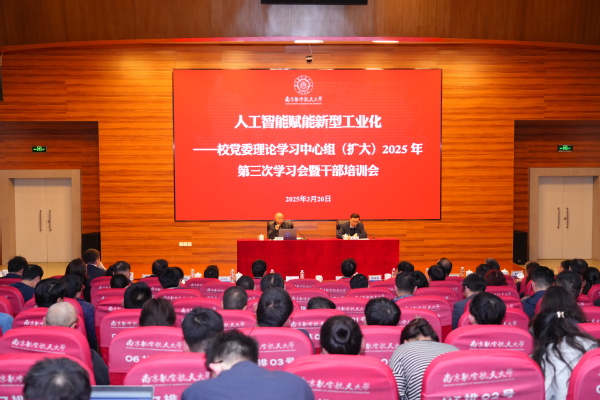3月20日,我校召开校党委理论学习中心组(扩大)2025年第三次学习会暨干部培训会。第十四届全国政协委员、工业和信息化部原副部长、研究员级高级工程师王江平围绕“人工智能赋能新型工业化”作专题辅导报告。工业和信息化部人事教育司副司长王振,校党委理论学习中心组全体成员,全体中层领导人员,党外代表人士、民主党派骨干,全体思政课教师、全体辅导员及师生代表等400余人参加学习。会议由校党委副书记、校长姜斌主持。