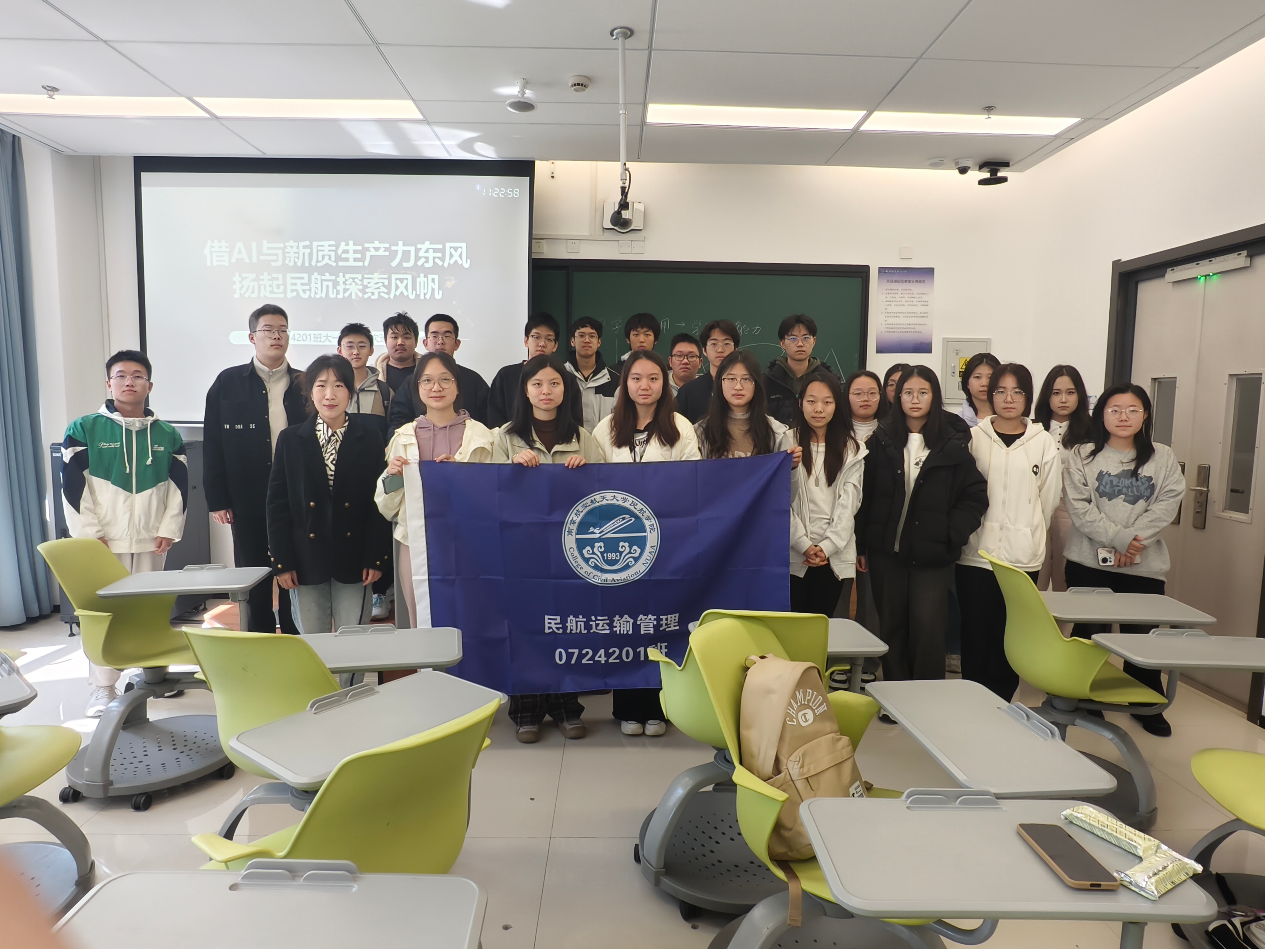 班会伊始,师生通过新媒体等资源进一步学习领会新质生产力的内涵特征,直观感受新人工智能、大数据等新兴技术重构产业生态的澎湃浪潮。张皓瑜立足智慧民航发展趋势,建议同学们广泛收集行业信息、科学分析研判,绘制个性化成长路线图;要善用校院两级优质学习资源与多元实践平台,锤炼专业核心竞争力。