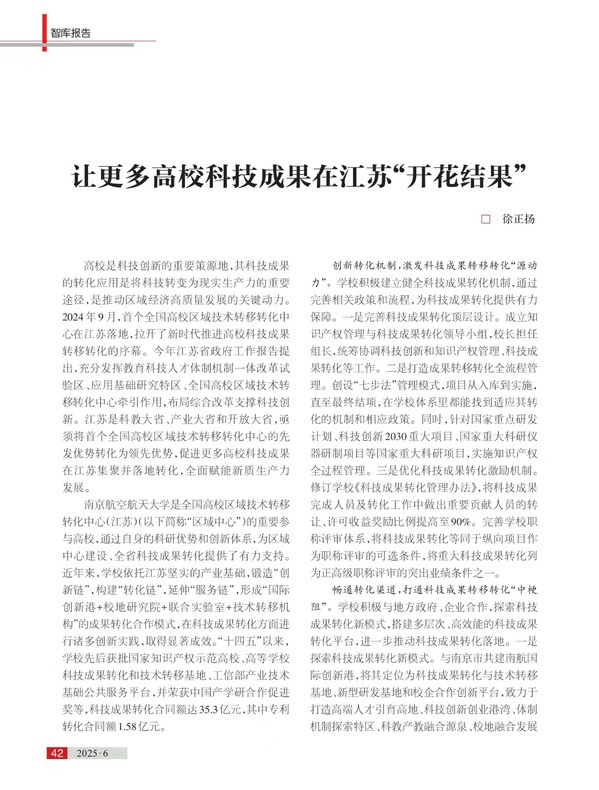 编者按:近日,《群众》2025年第6期刊发我校副校长徐正扬署名文章《让更多高校科技成果在江苏“开花结果”》。
