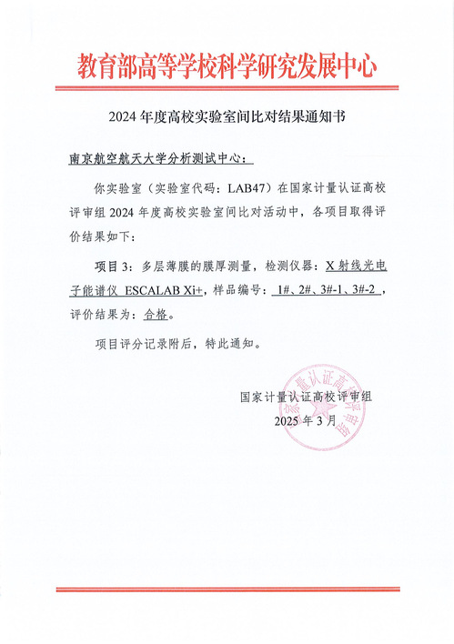 近日,在2024年度高校实验室间比对活动中,我校分析测试中心评价结果为“合格”。