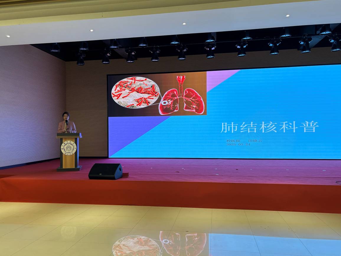晚上,在将军路校区艺术中心二楼多功能厅,由校医院医生田晓云就普及肺结核的传播机理、常见症状、预防方式等相关知识,为同学们作了一场详细生动的健康知识讲座。现场互动问答环节中,同学们积极踊跃提问,现场气氛十分热烈;保健科护士王迺玉在现场设置宣传展板,发放结核病防治折页,向大家宣传普及结核病的防治知识。