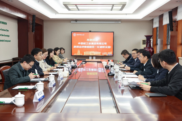 讲座前,杨朝东一行与经济与管理学院围绕引才育才、产学研融合、校企合作等领域开展了座谈交流。中核工程咨询有限公司总经理毕升、中核集团人力资源服务中心副主任丁洁、中国核工业华兴建设有限公司人力资源部部长孟祥东、中核工程咨询有限公司人力资源部副主任高瓯鹏以及经济与管理学院院长王群伟、院党委副书记胡苹、工商系主任赵亚普和部分教师代表参加座谈。