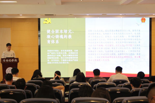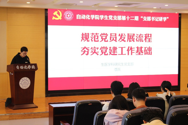 生医学科研究生党支部组织委员覃兵围绕《规范党员发展流程,夯实党建工作基础》主题进行领学。他结合支部工作实际详细介绍了学生党员发展的具体流程和注意事项,为自动化学院2025年春季学生党员发展工作奠定扎实的基础。