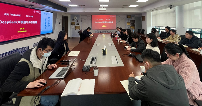 3月28日下午,第二十六期机关“学习大讲堂”在明故宫校区综合楼720会议室举行。本期活动由机关党委、校工会共同主办,邀请信息化处处长张鹏面向机关全体教职工讲授“DeepSeek大模型与办公应用”专题辅导报告,报告会由机关党委书记焦宏图主持。活动通过线下主会场、线上分会场同步开展。
