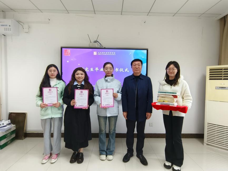 毕业之际,部分学生自愿将收藏的图书捐赠给学院藏书角,楚广兴为她们颁发捐赠证书。