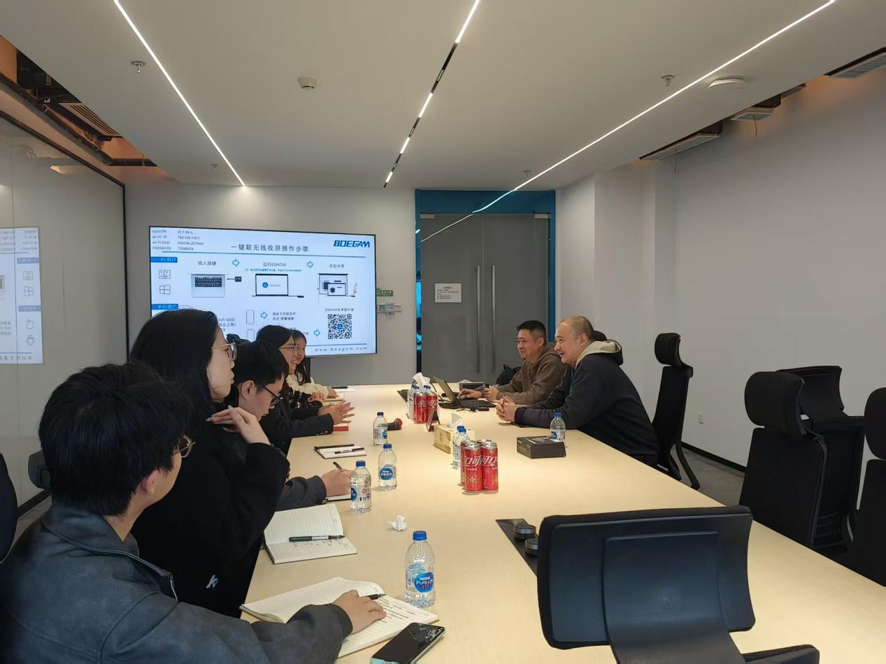 座谈会开始前,在王飞和顾华锋的带领下,师生走访参观了公司面向不同市场的产品展示区与员工办公区,切实感受到了公司追求团队、创新、超越、积极向上的企业文化。