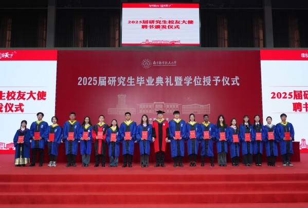 副校长张启钱为2025届研究生校友大使颁发了聘书。作为南航校友的代表,校友大使们将热情、认真、负责地担负起这项光荣的任务,做好与校友、母院、母校的桥梁与纽带。