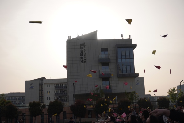 升旗仪式特别设置了“青春梦想寄语”环节。同学们在彩纸上写下对学业、生活的期望与祝福,折成灵动的纸飞机,伴随着“放飞梦想”的口令,数百架载满梦想的纸飞机迎风起飞。在《歌唱祖国》的动听乐声中,同学们放声歌唱,展望未来。