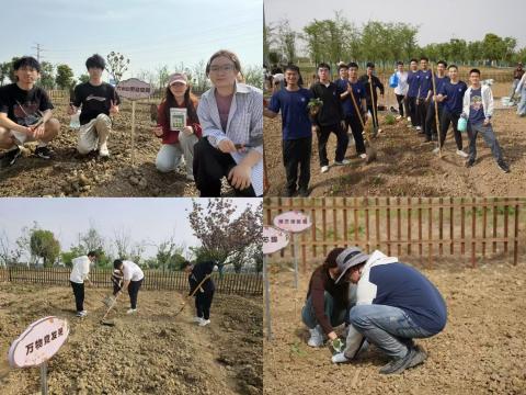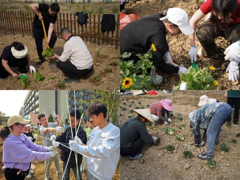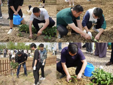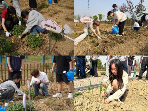 揭牌仪式后,师生们满怀激情地投入到种植实践活动中。大家手持劳动工具,以学院为单位分组协作,各司其职。有的同学挥锹松土,翻起带着青草芬芳的泥土;有的同学细心播种,将希望的种子埋入土壤;还有的同学提着水壶,为新种下的幼苗浇灌生命之源。现场气氛热烈,师生们用实际行动诠释了劳动的价值与意义。