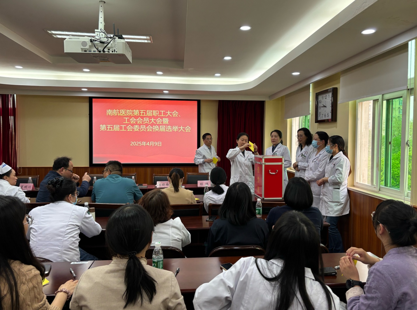 随后,大会第二阶段顺利完成第五届医院工会委员会换届选举。经民主投票、现场计票、宣布结果,饶建等5名同志当选为新一届医院工会委员。会后,随即召开新一届工会委员会第一次会议,投票选举产生了新一届工会委员会主席,并对各位委员进行了工作分工。新一届工会委员均表示,在校工会和医院直属党支部的正确领导下,将进一步提高政治站位,以高度的责任心、饱满的工作热情和勤勉务实的工作作风,认真做好工会工作,切实发挥好桥梁纽带作用,凝聚职工力量,助力医院高质量发展,为医院职工,为师生提供更加优质、满意的服务。根据议程,各科室将在会后围绕院长工作报告和绩效分配方案进一步研讨,并于4月14日前提交书面意见,为校医院深化改革提供决策依据。