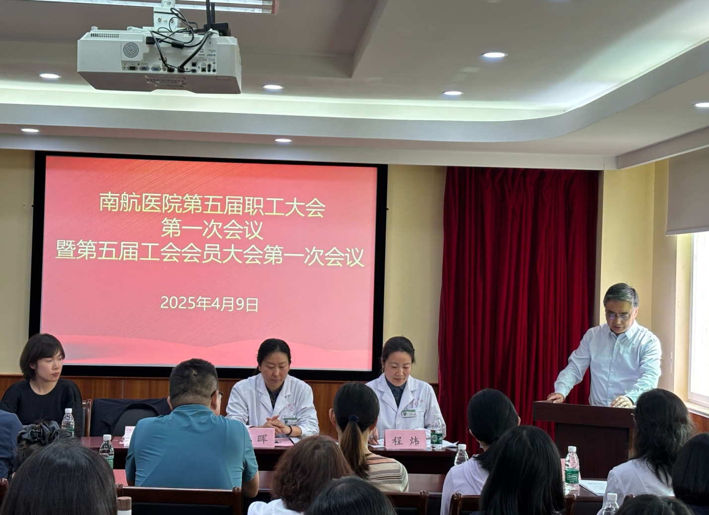 4月10日下午,校医院第五届职工大会、第五届工会会员大会第一次会议暨工会委员会换届选举大会在将军路校区医院五楼会议室隆重召开。校医院党政领导、医院职工、工会会员出席会议。会议由校医院副院长程炜主持,校长助理黄炳辉、校工会副主席徐梦洁、校工会办公室主任张颖莅临大会指导。