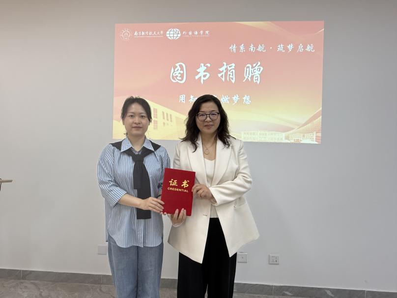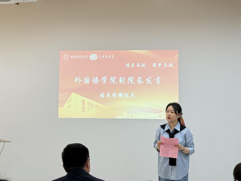为迎接第30个“世界读书日”的到来,4月16日,“情系南航·筑梦启航”图书捐赠仪式在天目湖校区外国语学院“一站式”学生社区顺利开展。天目湖校区管委会主任缪长宗、上海外语教育出版社代表崔红、外国语学院副院长徐智鑫及外国语学院24级102班全体学生参与活动。