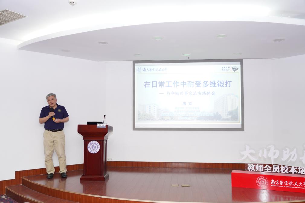 4月17日下午,我校教师全员校本培训——“大师助航”通识计划第十五期报告暨“大力弘扬教育家精神,加快建设教育强国”系列讲座在明故宫校区图书馆四楼报告厅举行,我校航空学院教授熊克作了题为“在日常工作中耐受多维锻打——与年轻同事交流工作体会”的报告。本次活动由党委教师工作部、教师发展与教学评估中心主办,航空学院承办。宣传部/教师工作部、教发中心、航空学院相关负责同志参加报告会,全校150余位教师参与了培训。培训由宣传部/教师工作部部长助理、马克思主义学院青年教师韩军垚主持。
