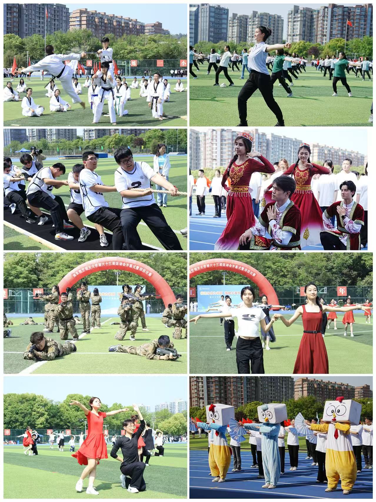 开幕式表演精彩纷呈:冲天飞龙s8d航模表演割开空气,直冲云霄;教工广播操老师们昂首阔步,精神抖擞;由七个学院同学参演的跆拳道表演刚柔并济,气势如虹;舞龙选修课学生和南航龙狮队队员驾驭的22条巨龙翱翔九天,催人振奋;体育舞蹈协会及各学院代表用华尔兹书写青春诗篇;国防体育运动课程班同学带来节目《砺剑》,传承红色基因,实现蓝色梦想,最后,南航首届拔河比赛的两校区冠军进行终极力量之战,激荡出青春热血的澎湃回响,把开幕式推向高潮。
