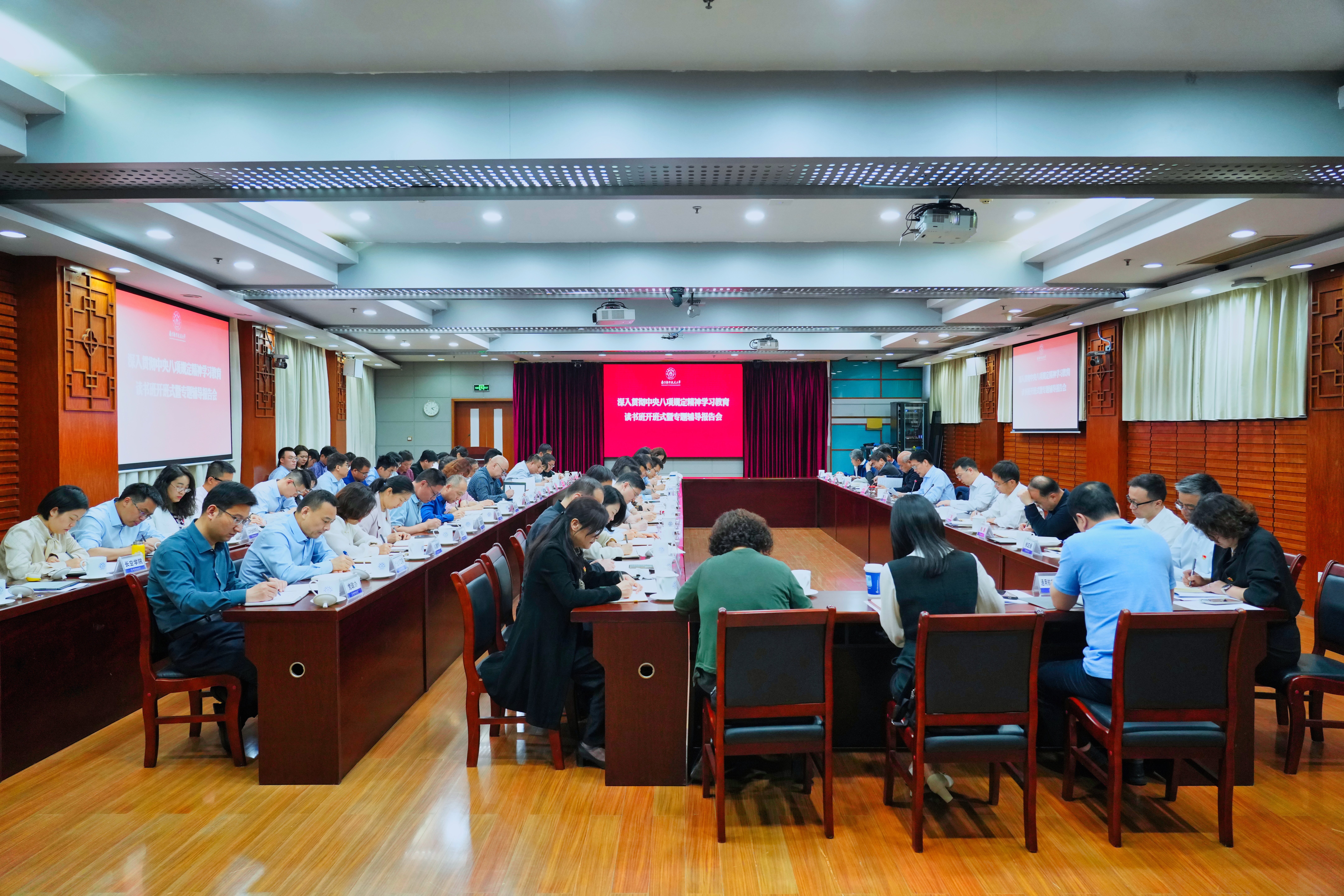 4月17日,我校举行深入贯彻中央八项规定精神学习教育读书班开班式暨专题辅导报告会。中央纪委国家监委第二监督检查室三处处长、一级调研员陈禹玎作专题辅导报告。全体校领导、党委常委,校纪委委员,校学习教育专班成员,各院级党组织书记参会。校党委书记甄良主持报告会。