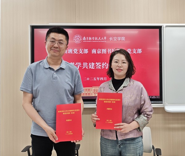 在联学共建环节,戴洪宇、蒋彦龙进行了专题发言。戴洪宇回顾了南京图书馆的历史,他指出要充分发挥图书馆文化阵地作用,以典籍中的廉政智慧赋能新时代作风建设,创新学习形式,推动中央八项规定精神学习入脑入心。蒋彦龙介绍了长空学院的育人体系,他强调要推进作风建设常态化长效化,把作风建设融入人才培养的全过程、各环节,关注每一位学生的成长成才。在交流环节,双方就如何将中央八项规定精神融入管理服务、文化育人等环节展开深度研讨,达成“理论联学、资源联享、活动联办”的校馆联动共识,双方表示将以此次活动为起点,持续深化全面从严治党主体责任落实,通过制度化、常态化、品牌化建设,推动党建业务“一融双高”。随后,长空创新班党支部书记张璐和南京图书馆第一党支部书记吉杰共同签署了联学共建协议。