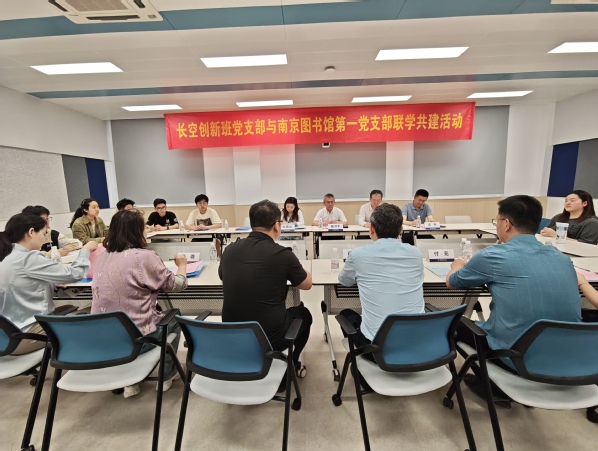 为深入贯彻中央八项规定精神学习教育,扎实推进党的作风建设走深走实,4月17日,长空创新班党支部与南京图书馆第一党支部以“阅典明规矩 联心筑清风”为主题开展联学共建活动,南京图书馆党委书记、副馆长戴洪宇,长空学院党委书记、院长蒋彦龙,共建党支部成员共同参加。活动由长空学院党委副书记庞依达主持。