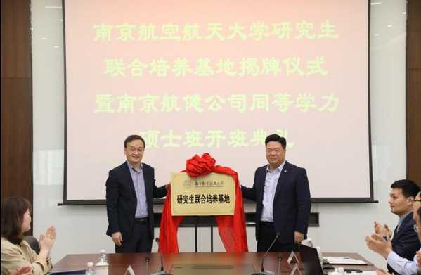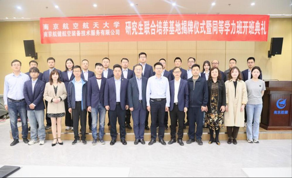 2025年4月15日上午,南京航空航天大学与南京航健公司携手举办研究生联合培养基地揭牌仪式暨2025级同等学力硕士班开班典礼。自动化学院院长陈谋、副院长宋晓峰、教学办公室主任王俊彦、基地负责人罗运虎、自动控制系副主任欧阳权,南京航健公司董事长杨昌宝、副总经理杨少平、军代表包逸平和樊红星、质量安全部部长王莹莹等领导以及全体学员出席仪式。仪式由技术部部长彭虎主持。