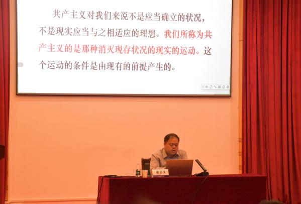 校学生资助管理中心主任唐志文作《共产党宣言的历史意义与当代价值》专题报告。他从《共产党宣言》的历史背景与思想精髓讲起,联系现实国情,阐述其在新时代中国的理论指导作用和精神引领价值,引导学员坚定理想信念,深刻理解中国共产党人的初心使命。