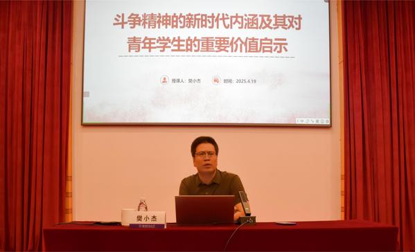 能源与动力学院党委副书记樊小杰为三个学院的培训班临时团支部授旗,并作《斗争精神的新时代内涵及其对青年学生的重要价值启示》专题报告。他从习近平总书记关于斗争精神的重要论述出发,结合新时代国家发展和青年成长的时代背景,深入阐释斗争精神的丰富内涵与实践要求,勉励青年学生树立历史主动精神,在国家需要中展现青春担当。