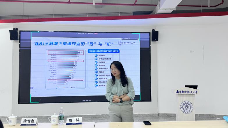 最后,易洋深刻剖析了在AI浪潮下英语专业的危险与机遇。她指出,虽然人工智能在语言处理方面取得了显著进展,但它并不具备人文素养和跨文化沟通能力,这正是复合型外语人才的优势所在。面对AI的冲击,外语专业学生应更加珍惜并发挥自己的独特优势,培养反脆弱能力。易洋鼓励同学们增加跨学科学习能力,以语言为基础,成为“外语+”复合型人才,提高自身的抗风险能力。