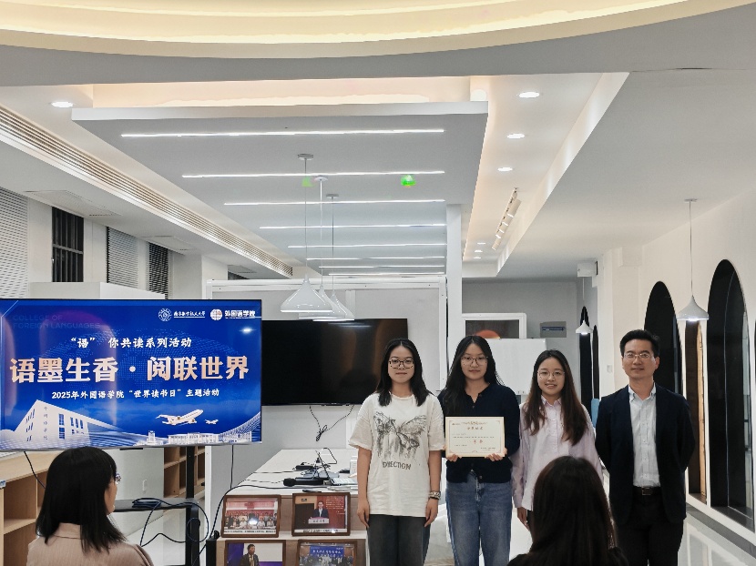2025年4月22日,外国语学院“语墨生香·阅联世界”世界读书日线下活动在学院一楼院史馆成功举办。本次活动响应国家“全民阅读”战略,结合第30个“世界读书日”契机,通过朗诵竞赛、翻译互动等形式,展现了外语学科特色与跨文化阅读的魅力,吸引了师生们积极参与,其中英语系副主任王伟,日语系教师宋歌,本科生辅导员冯子格、易邦妮参与本次活动并担任评委。