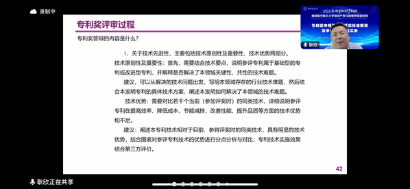 专题培训环节聚焦科技成果转化核心实务,为科研创新提供专业赋能。4月25日举办的南航科技成果转化政策深度解读会,深度剖析学校现行政策文件,对科技成果转化的特性、定价机制、收益分配模式、合同框架设计与拟定要点,以及业务流程进行系统性阐释,助力科研人员精准把握成果转化路径。4月28日开展的专利奖申报专题培训,从报奖专利遴选、评审标准解读、申报材料撰写等维度,系统解析专利奖申报策略与实务技巧。4月30日举行的技术开发与成果转化法律风险防范专题课程,通过典型案例剖析,深入讲解知识产权权属界定、技术保密协议签订、合同纠纷处理等法律实务要点,切实提升科研成果转化合规管理水平。
