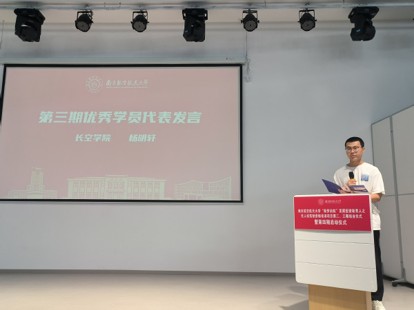 随后,第三期优秀学员代表杨明轩分享培训收获,他讲述了不畏困难和挑战的培训历程,以及通过培训增长了航空专业知识储备,提升了专业实践能力、就业竞争力和责任意识的所得所获。他还表达了对学校和瑞华基金会提供培训机会与指导的感谢,以及自己未来航空报国的志向。