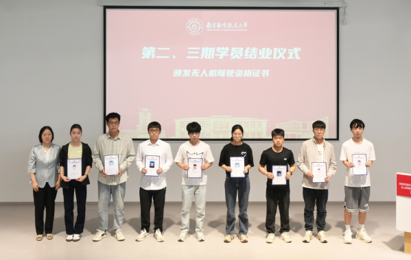 在第二期、第三期培训后,又有62名同学成功通过考核,赵晓娟和杨波共同为取得执照的学员代表们颁发由国家民航总局授予的无人机驾驶资格证书。