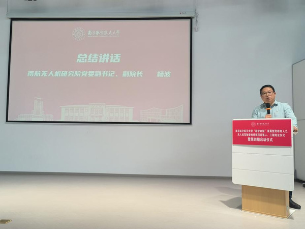 杨波在总结讲话中表示了对瑞华慈善基金会长期支持我校人才培养工作的感谢,他指出该项目是学校对发展型资助育人的有益探索,无人机研究院和长空科技将不遗余力为更多学生提升新质技能,成长为符合低空经济发展需求的未来创新人才而保驾护航。最后,他鼓励同学们坚定三航报国的理想,把握住学校提供的各项实践锻炼平台和机会练就过硬本领,为未来事业发展积蓄更多力量。