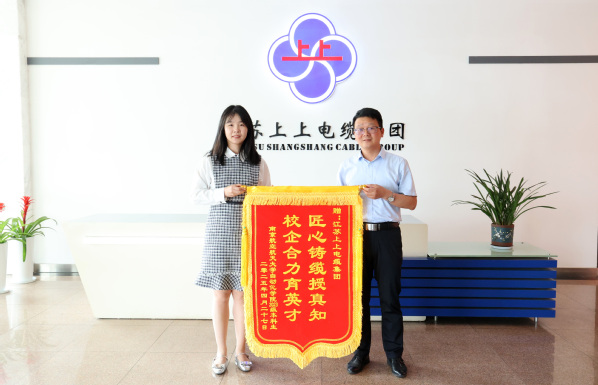 活动尾声,吴静文代表我校自动化学院师生向上上电缆集团赠送“匠心铸缆授真知,校企合力育英才”锦旗,集团总经理助理狄洪杰代表企业接收锦旗。据悉,自1992年首批南航毕业生加入上上电缆集团以来,先后已有40余名南航校友在企业关键岗位任职,双方联合建立的“江苏省研究生工作站”以及开展的前沿课题研究和项目合作,通过技术攻关协同化、人才培养定制化、成果转化高效化的创新模式,已成为产学研深度融合的典范。