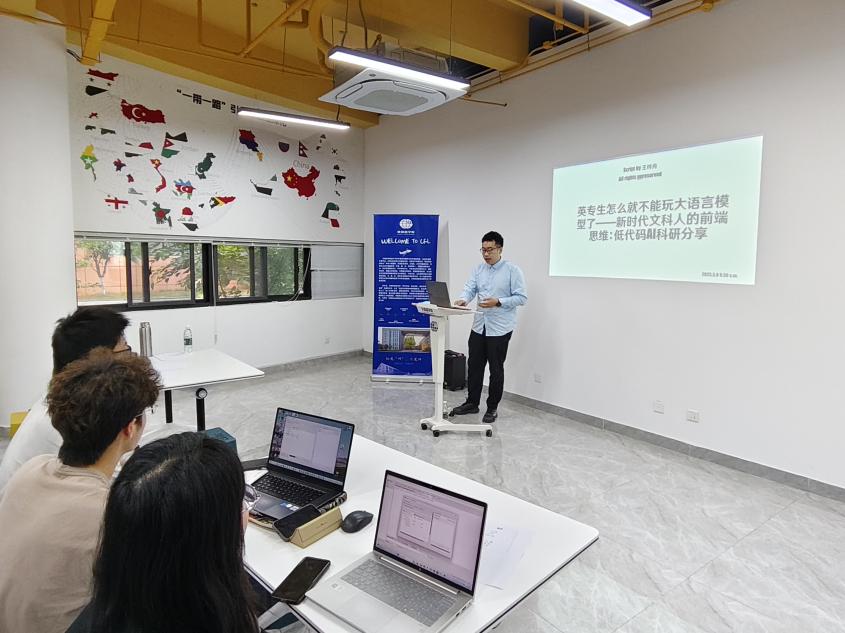 5月8日,外国语学院邀请大学外语教学部专业教师王秀文及在读研究生王梓舟于“一站式”学生社区开展“AI赋能语言学习与研究”系列讲座,专业教师钟勇及大一年级学生共同参加了本次讲座。