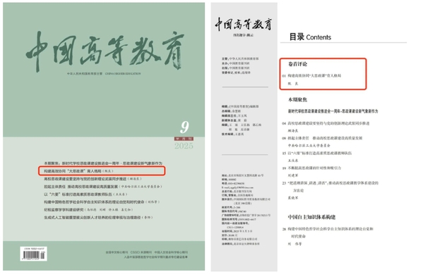 编者按:近日,《中国高等教育》2025年第09期卷首评论刊发我校党委书记甄良教授署名文章《构建高效协同“大思政课”育人格局》。