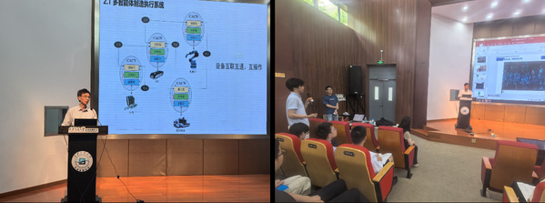 “长空御风”学生科创团队介绍了团队的发展历程与奋斗故事,讲述了团队参与科创赛事的经历与顽强拼搏的精神,并展示了团队自主设计、制造的机器人,邀请同学们上台体验机器人操作过程,引起了热烈反响。