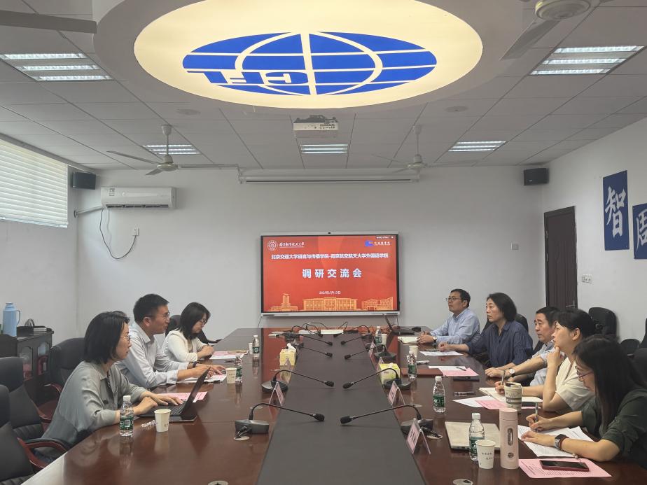 5月13日,北京交通大学语言与传播学院党委书记孙文博一行来外国语学院调研交流,学院党委书记左彤云、院长徐以中、副院长姜礼福、副院长徐智鑫及系部相关负责人出席并参与研讨。