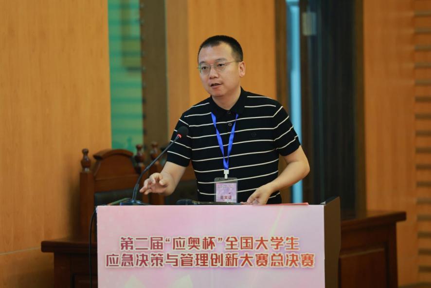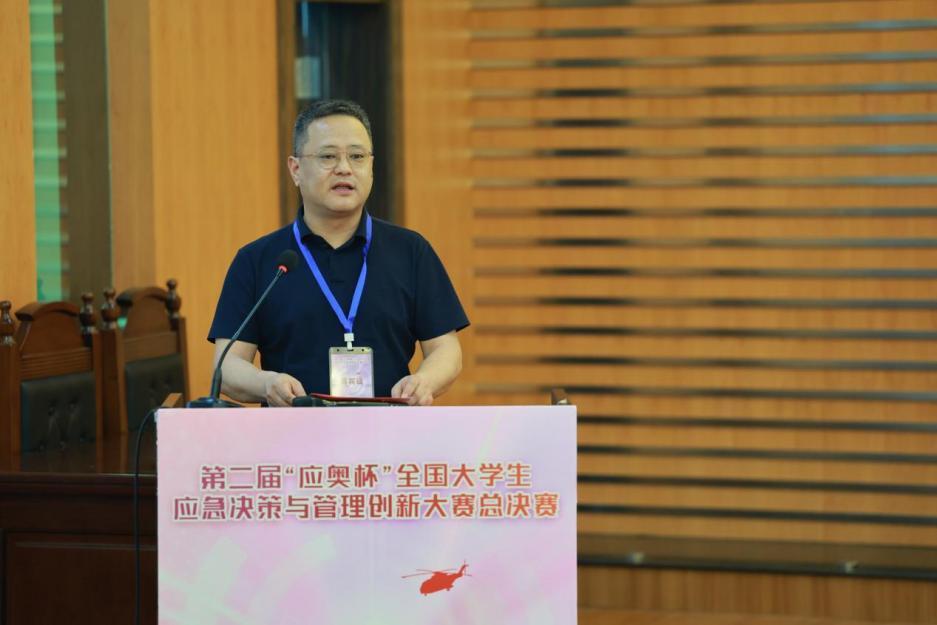 我校教务处副处长柯世堂教授致欢迎辞,他表示,本次大赛是贯彻习近平总书记关于应急管理重要论述的具体实践,为构建现代化应急管理体系培养创新人才。作为承办方,此次大赛为学校师生提供了与全国高校同行交流学习的宝贵机会,搭建了良好的合作桥梁,为新文科建设提供了新的发展动力。