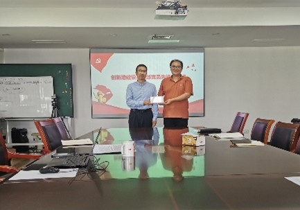 随后,举行了“党员先锋岗”授牌仪式。杨杰为获得“党员先锋岗”的两位同志分别授牌,充分肯定了他们恪尽职守、主动担当、冲锋在前的先锋模范作用。同时,他也勉励大家在今后的工作中,要继续牢记初心和使命,立足自身岗位职责,充分发挥党员的先锋模范作用,带头攻坚克难、奋发作为,共同把创新港支部打造成为坚强战斗堡垒,以基层党建实效助力创新港事业快速稳健发展。