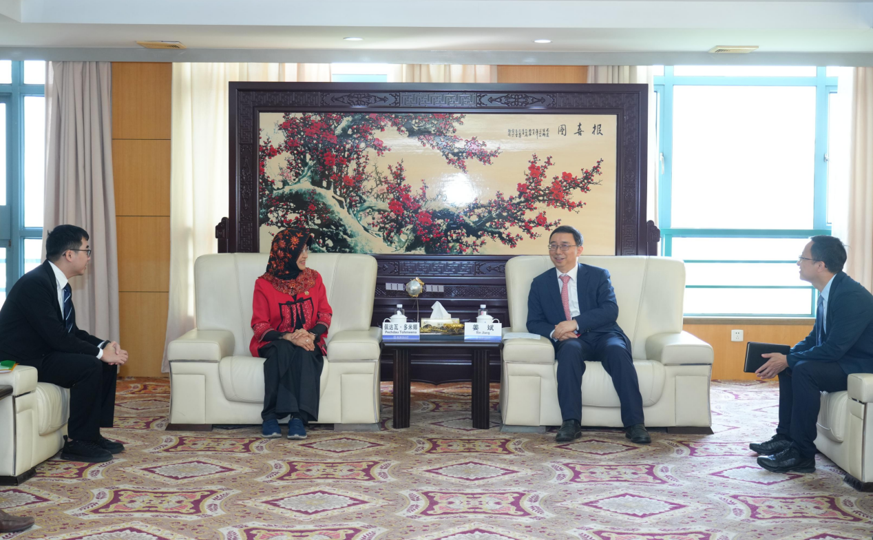 5月19日上午,泰国高等教育科研与创新部顾问佩达瓦・多米娜一行以及泰国格乐大学代表团到访我校。校长姜斌会见来宾。