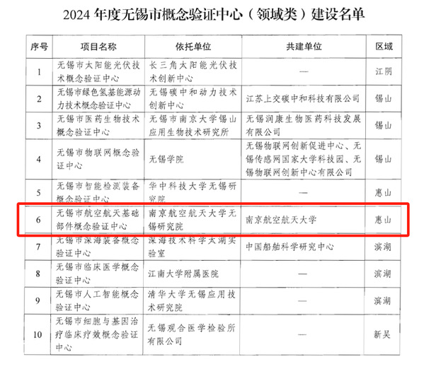 近日,经无锡市科技局评定,由我校无锡研究院牵头建设的“无锡市航空航天基础部件概念验证中心”顺利获批,是无锡市第一批建设的10家概念验证中心中专业从事航空航天领域的概念验证平台。