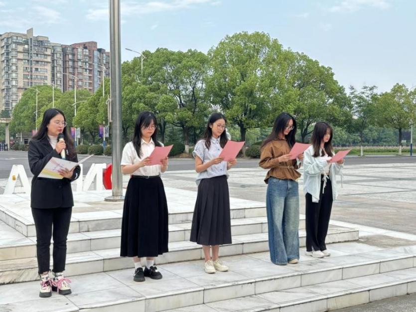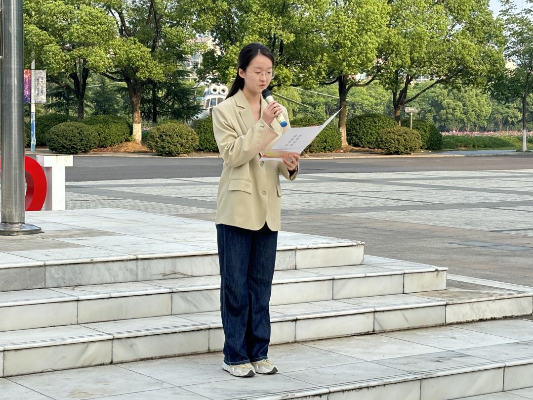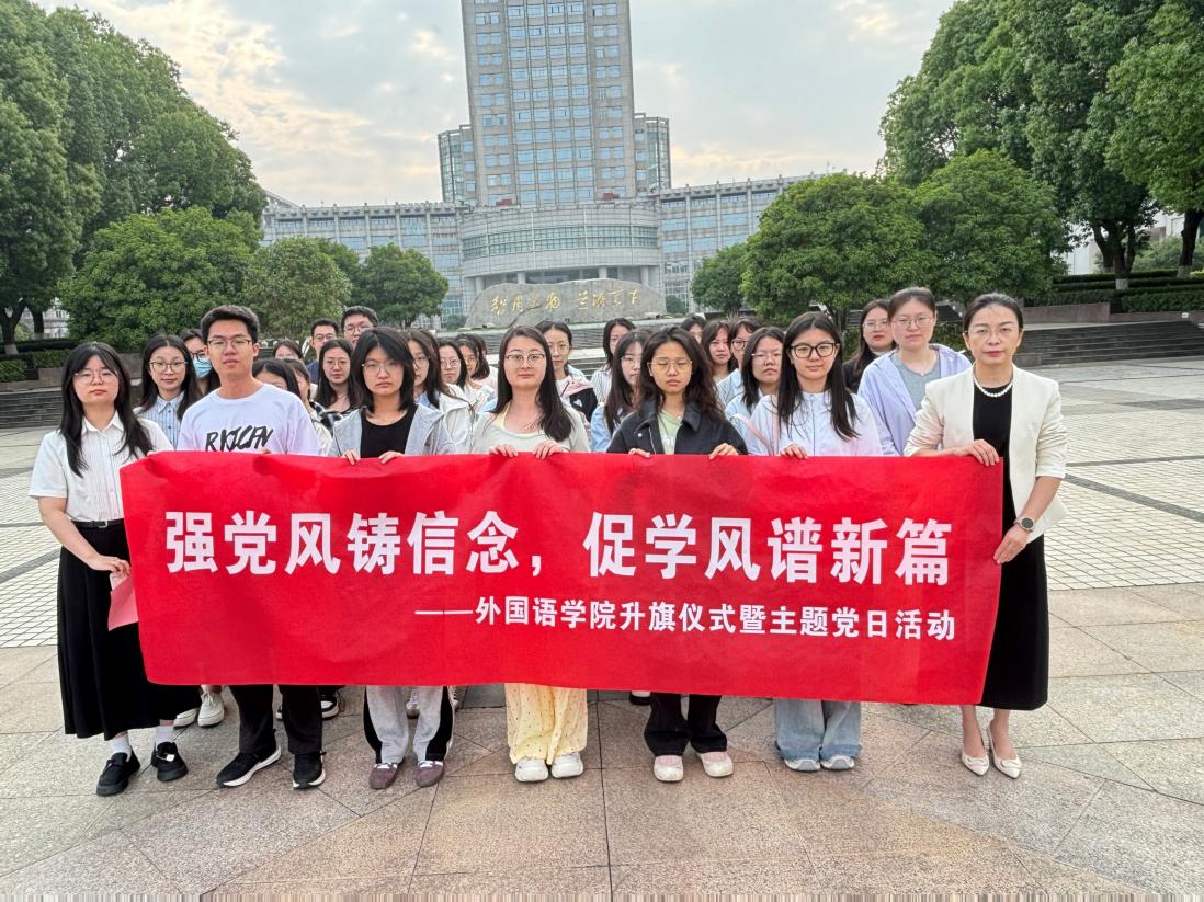 为深入贯彻中央八项规定精神,强党风、促学风,5月26日,外国语学院在将军路校区国旗广场举办“强党风铸信念,促学风谱新篇”升旗仪式暨主题党日活动。外国语学院党委副书记吴科颖,辅导员代表朱芸、程启玉,外国语学院本研党支部党员、积极分子、发展对象代表,各年级学生代表参加活动,活动由2021级本科生黄佳玲主持。